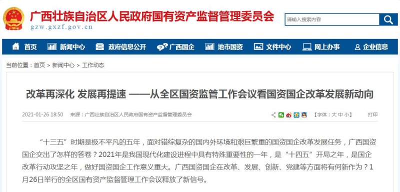 “十三五”時(shí)期是極不平凡的五年,面對(duì)錯(cuò)綜復(fù)雜的國內(nèi)外環(huán)境和艱巨繁重的國資國企改革發(fā)展任務(wù),廣西國資國企交出了怎樣的答卷?2021年是我國現(xiàn)代化建設(shè)進(jìn)程中具有特殊重要性的一年,是“十四五”開局之年,是國企改革行動(dòng)攻堅(jiān)之年,做好國資國企工作意義重大。廣西國資國企在改革、發(fā)展、創(chuàng)新、黨建等方面將有何新作為?1月26日舉行的全區(qū)國有資產(chǎn)監(jiān)督管理工作會(huì)議釋放了新信號(hào)。