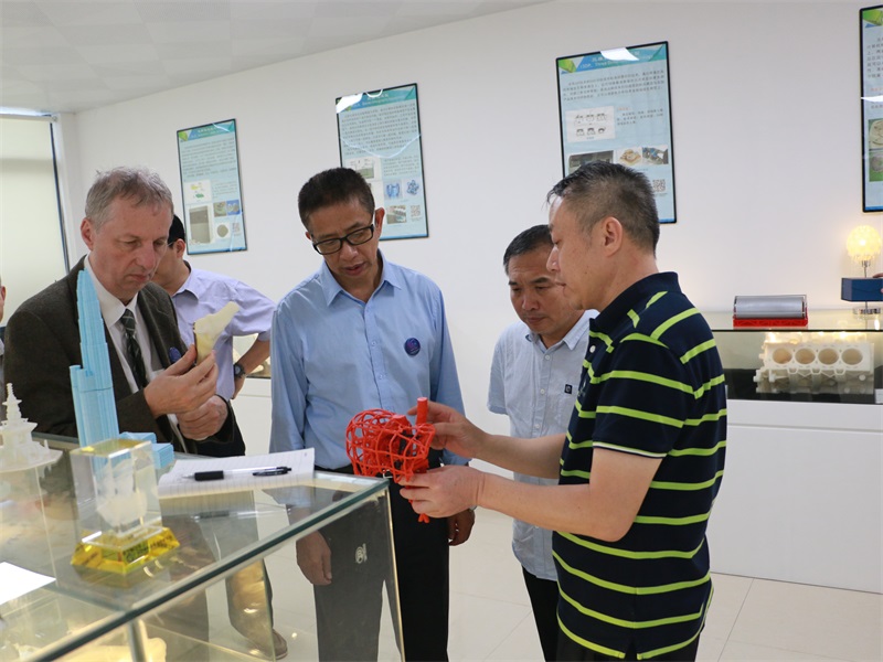 隨后,魯克·約瑟夫先生一行在霍副院長的陪同下,參觀了我院的一樓展廳和實驗室、六樓3D打印技術研發及推廣應用中心以及生產車間。