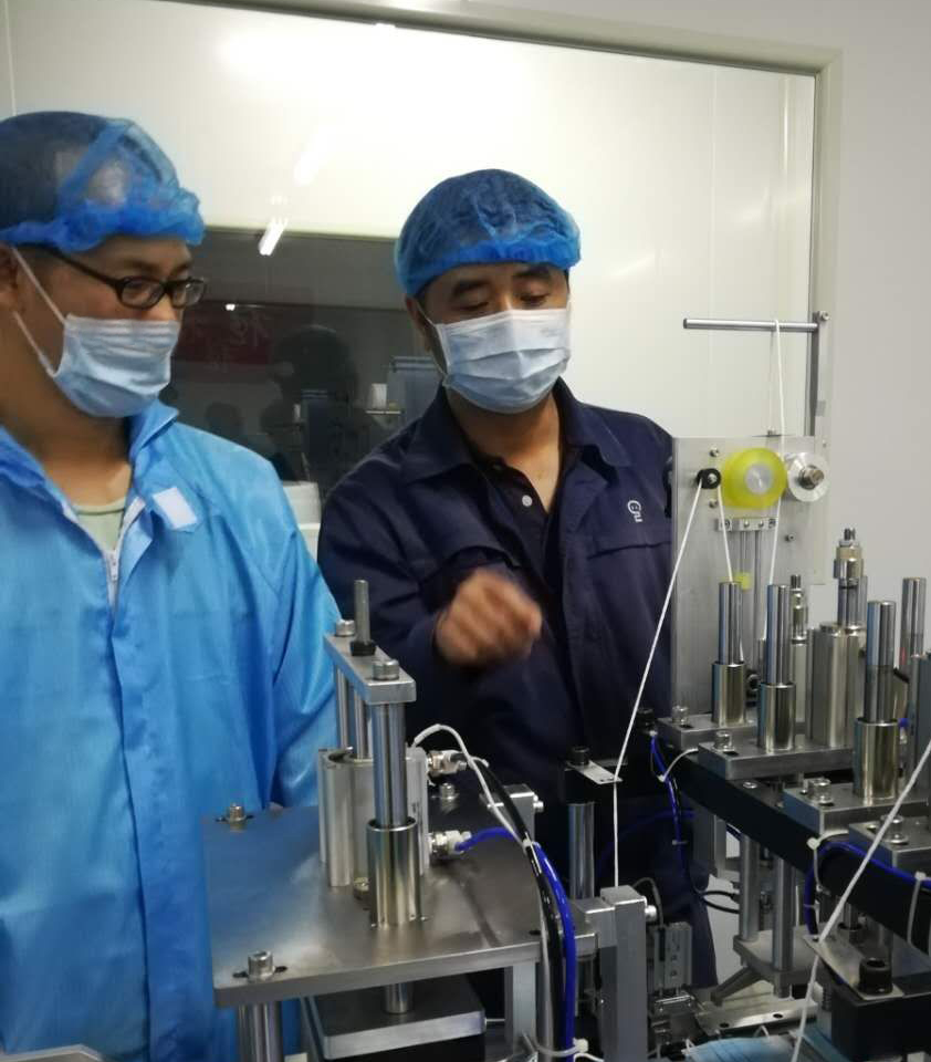 在凌洪明看來,設備一天無法正常轉動生產,抗疫物資就要晚一天才能對外輸送,用自身本領讓生產防疫物資的設備正常轉起來是“疫”不容辭的責任,也是為疫情防控做點滴貢獻。經過詳細詢問現場工人、開機觀察設備運行情況、多次檢查和調試后,凌洪明查找出了超聲波沾合氣缸氣壓不足導致耳帶粘連不牢易脫落、零部件易松動、送料不穩定等問題,并一一給出解決方案。醫藥公司對凌洪明表示誠摯感謝和高度贊賞,并希望后續能與機械院公司簽訂合作協議,為該公司提供技術服務和培訓。