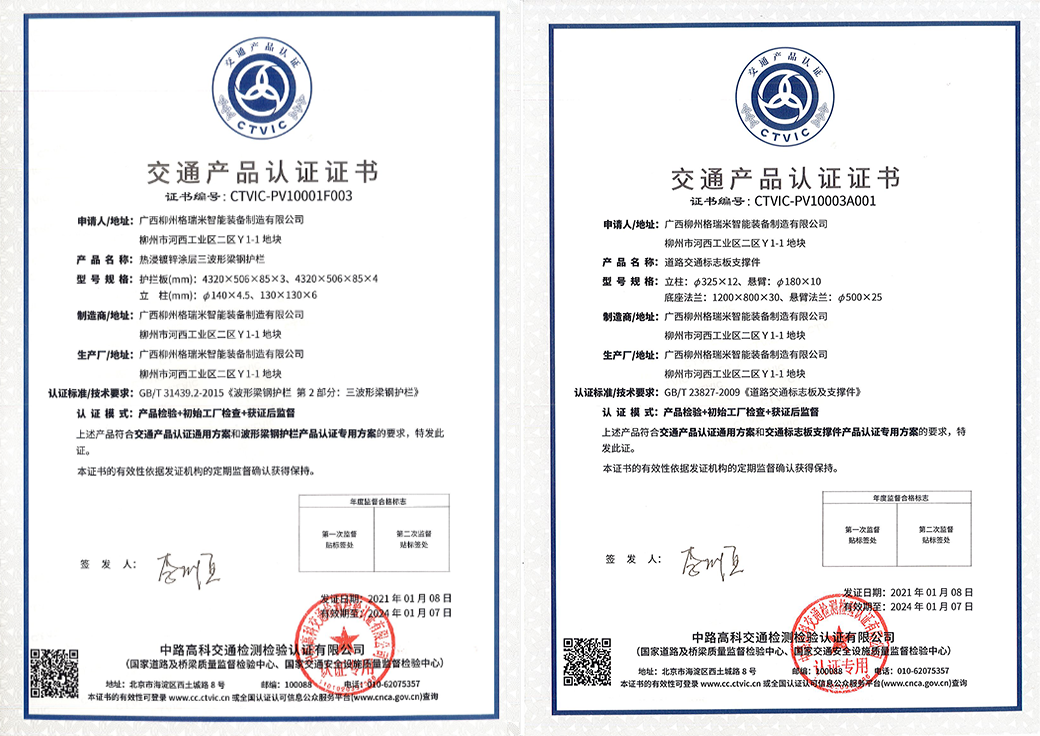 此次柳州格瑞米公司成為廣西首家獲得相關(guān)交通產(chǎn)品認(rèn)證證書,也充分證實了其產(chǎn)品在交安產(chǎn)品安全性與可靠性方面的領(lǐng)先實力,樹立起行業(yè)品質(zhì)標(biāo)桿。2020年11月自治區(qū)人民政府批復(fù)了《廣西高速公路網(wǎng)規(guī)劃(2018-2030)》,此次獲得產(chǎn)品認(rèn)證證書,為廣西交通建設(shè)項目提供了前期準(zhǔn)備,堅定了柳州格瑞米公司立足柳州,輻射廣西,放眼全國的信心,也為其交通產(chǎn)品進(jìn)全國市場鋪平了道路。