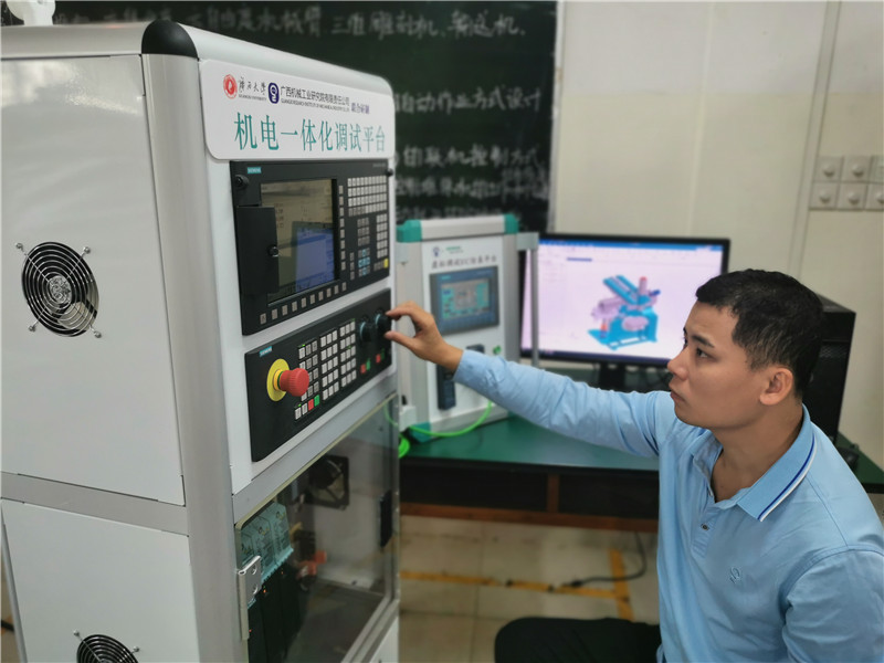 “中國智能制造突圍需要更多人的參與。”2017年,李修明爭取到廣西科技廳組織的高層次技能人才公費赴德國培訓名額,培訓期間學習了數字孿生、精密制造等先進制造方法,調研了“雙元制”工學結合培訓模式,深刻引發他對廣西工科院校教學模式中課程內容設置與現代化制造模式脫節這一問題的探索和實踐。