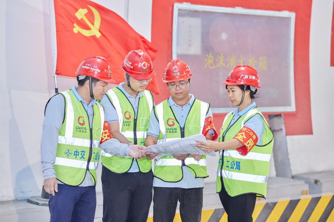 在機電、交安等建設項目工地上,鮮艷的黨旗迎風飄揚,紅色動力強勁涌動。